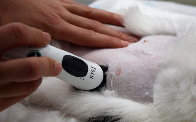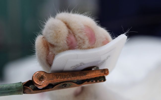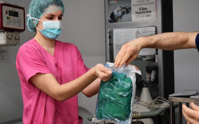 Una vez monotorizadas y controladas sus constantes vitales ( frecuencia cardíaca y respiratoria, presión arterial, saturación de oxígeno y temperatura corporal) y aplicada la anestesia, nuestro paciente está listo para ser intervenido.